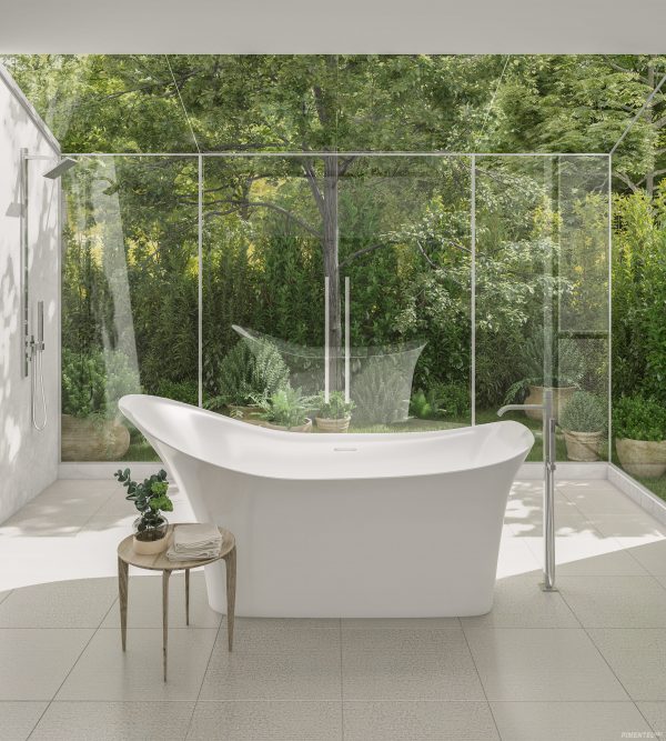 MOOVE A BANHEIRA FREESTANDING ESCULPIDA EM MINERAIS PREMIUM.